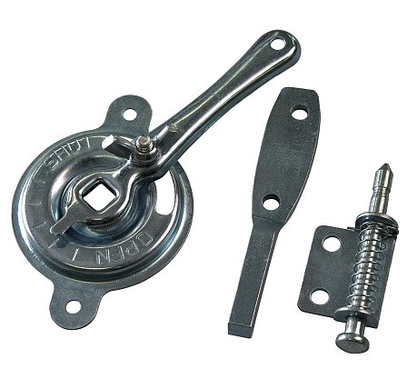 Узел управления изготовлен из оцинкованной стали, состоит из оси с пружиной, корпуса и поворотной лопатки.